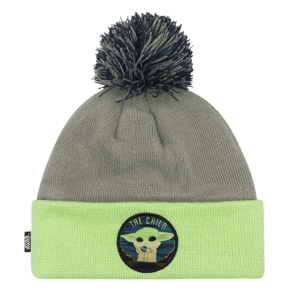 Tame fluffy hair or keep warm with the Star Wars™ The Mandalorian™ Grogu™ Beanie. This grey knit beanie has minty green accents and features a printed patch of the precious bounty. The pom on top adds the perfect finishing touch to the top of this design. Knit beanie is made of knit acrylic and is approximately 7.25-inches wide and 6.5-inches tall. Hand wash.
