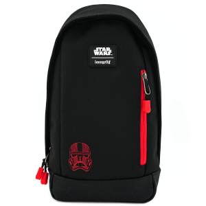 Today Is The End Of The Republic. All remaining systems will now bow to the first order. This 100% official Loungefly nylon sling backpack will help you on your way to making the first order supreme. This sling bag is straight from the Dark Side with it’s printed details, nylon webbing strap, contrast red toggles and embroidery. Measuring approximately 7″ width, 14″ height and 2.5″ depth.
